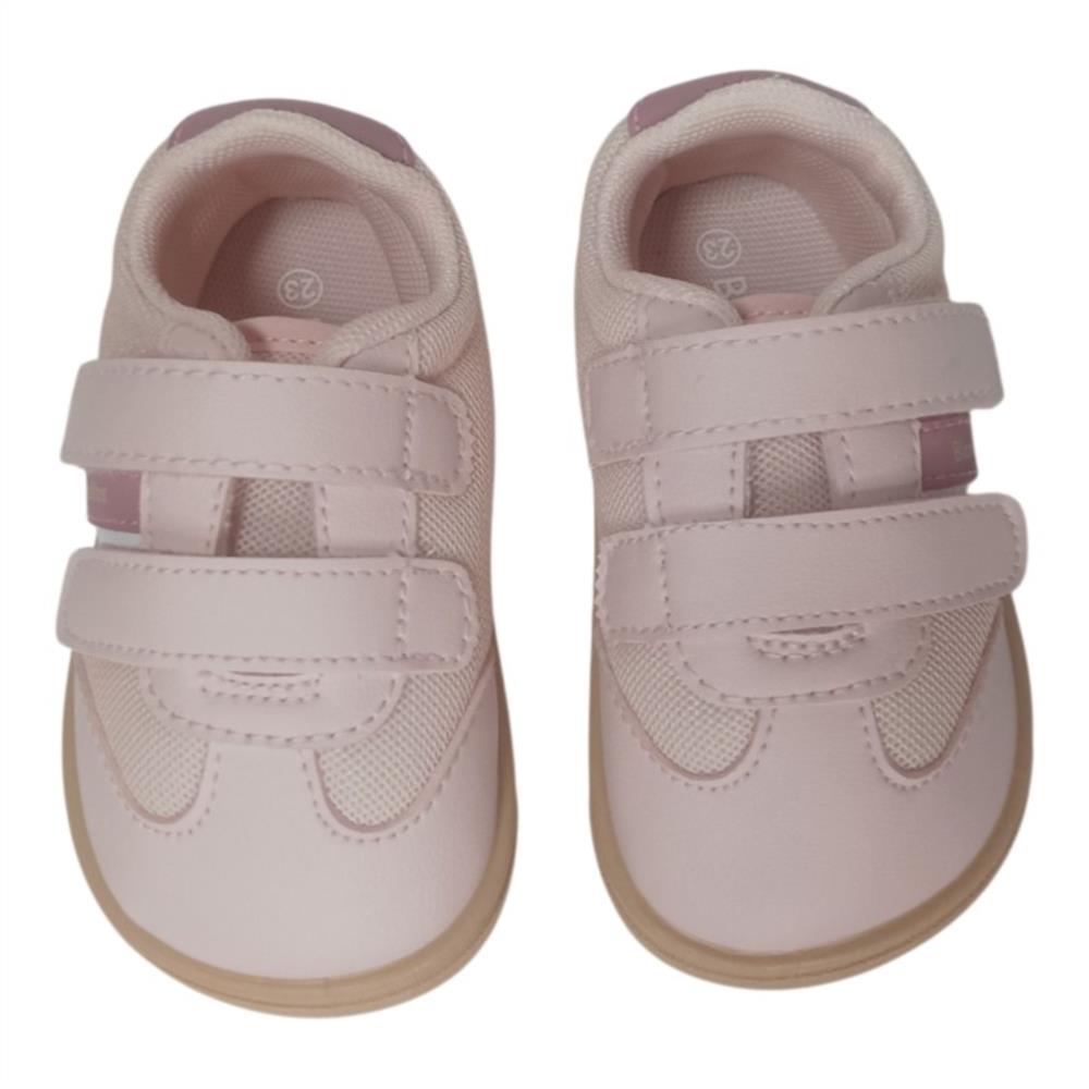 Zapatillas respetuosas Blanditos Guppy Rosa para niñas con estilo deportivo y diseño ligero. Elaboradas en microfibra transpirable con paneles de malla, ofrecen frescura y comodidad. Su suela fina flexible con cero drop, junto a la horma ancha y el doble velcro, favorecen una pisada natural y facilitan la autonomía en el día a día.
