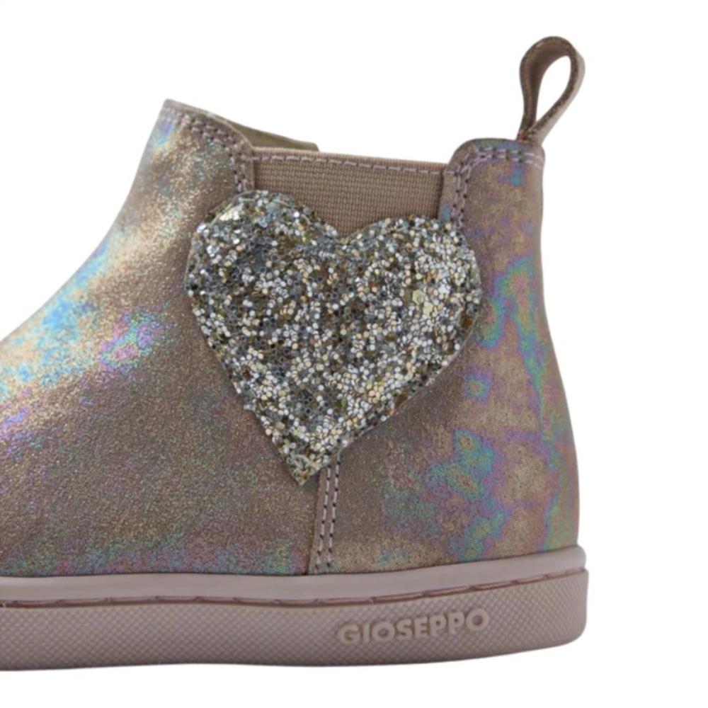 Botines de calzado respetuoso infantil en piel serraje con brillo, flexibles y sin drop, diseñados para acompañar el movimiento natural del pie con comodidad y estilo.