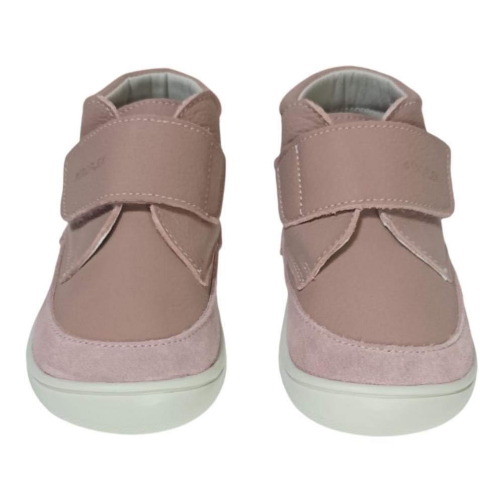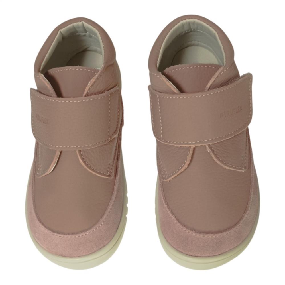 Los botines Davinci Pink de Piruflex son calzado respetuoso diseñado para pies estrechos y medios, con suela minimal, horma cuadrada, plantilla plana extraíble y cierre de doble velcro. Flexibles y sin drop para un desarrollo natural del pie.