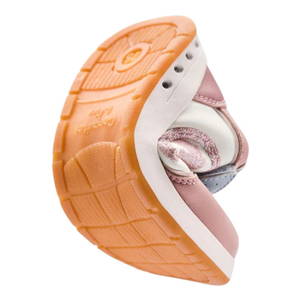 Zapatillas barefoot respetuosas Conguitos Goflex Sneakers Multi White Light con unicornio rosa, luces en la suela, puntera ancha y horma neutra para el desarrollo natural del pie.