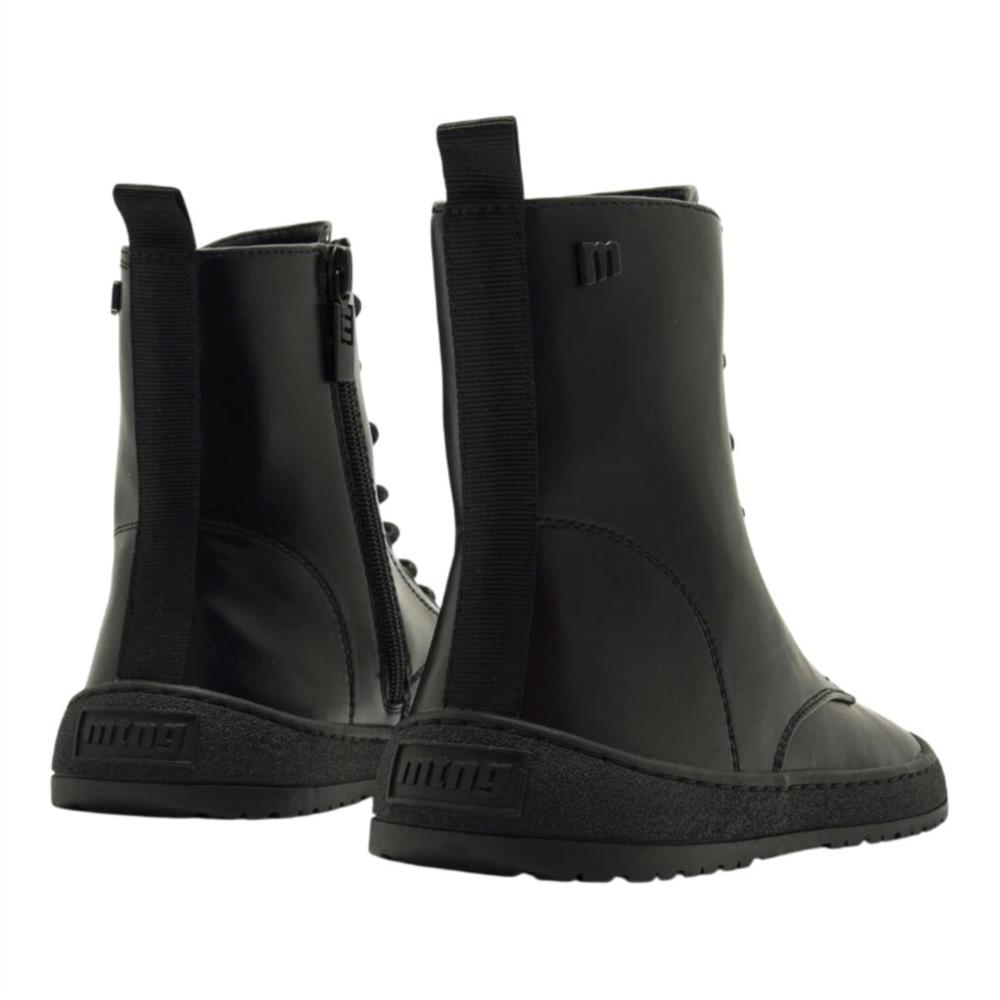 Los botines Mustang Free Alask Polly Black combinan estilo militar con respeto por la salud de tus pies. Son veganos, flexibles, de suela plana y puntera ancha para una pisada natural.