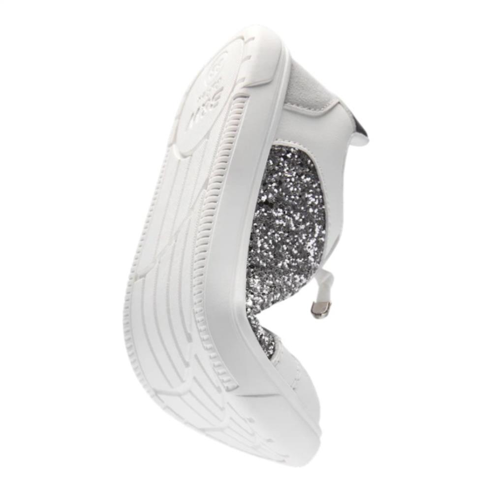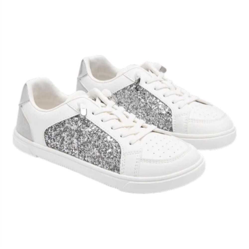 Zapatillas barefoot blancas de calzado respetuoso con glitter plateado